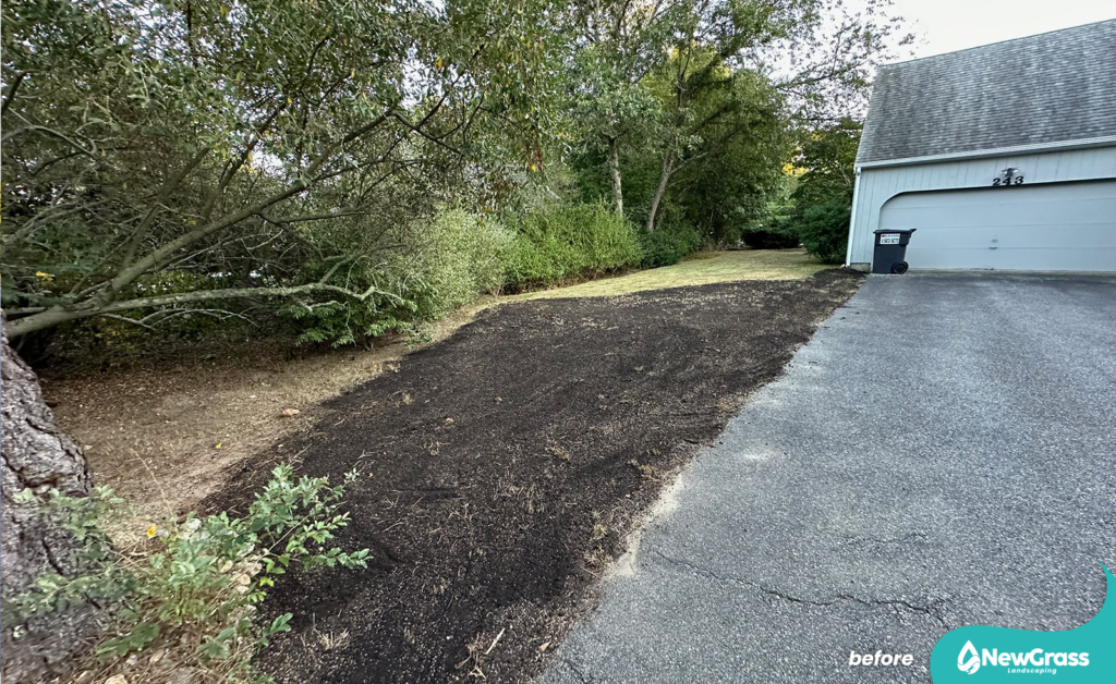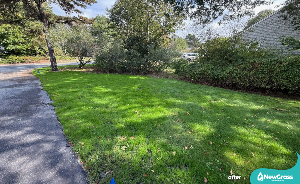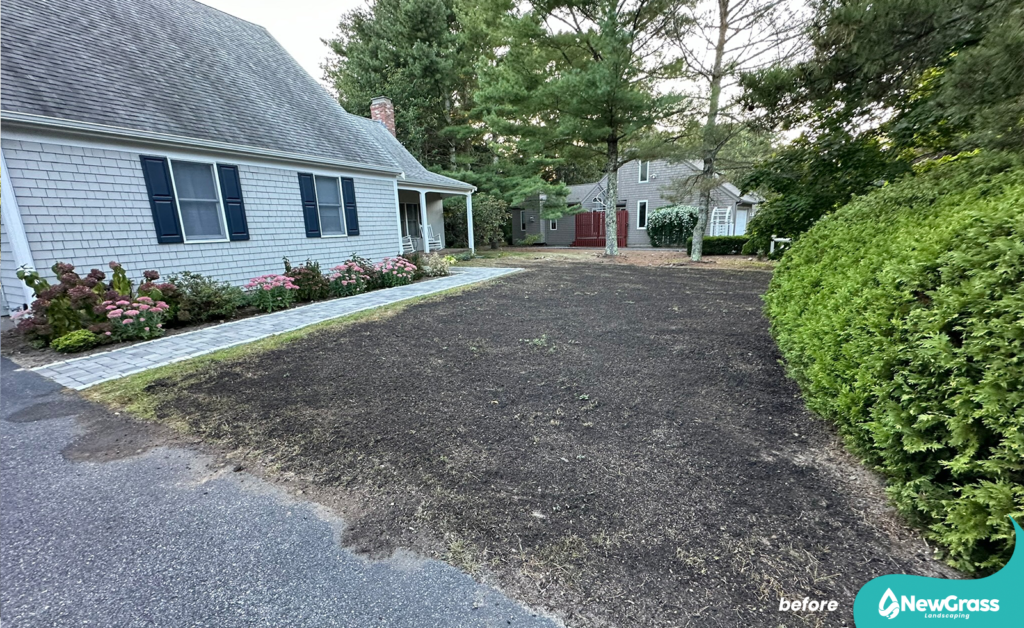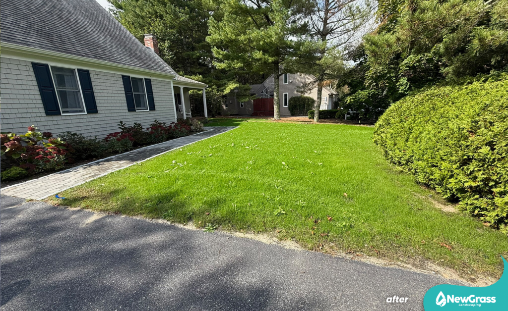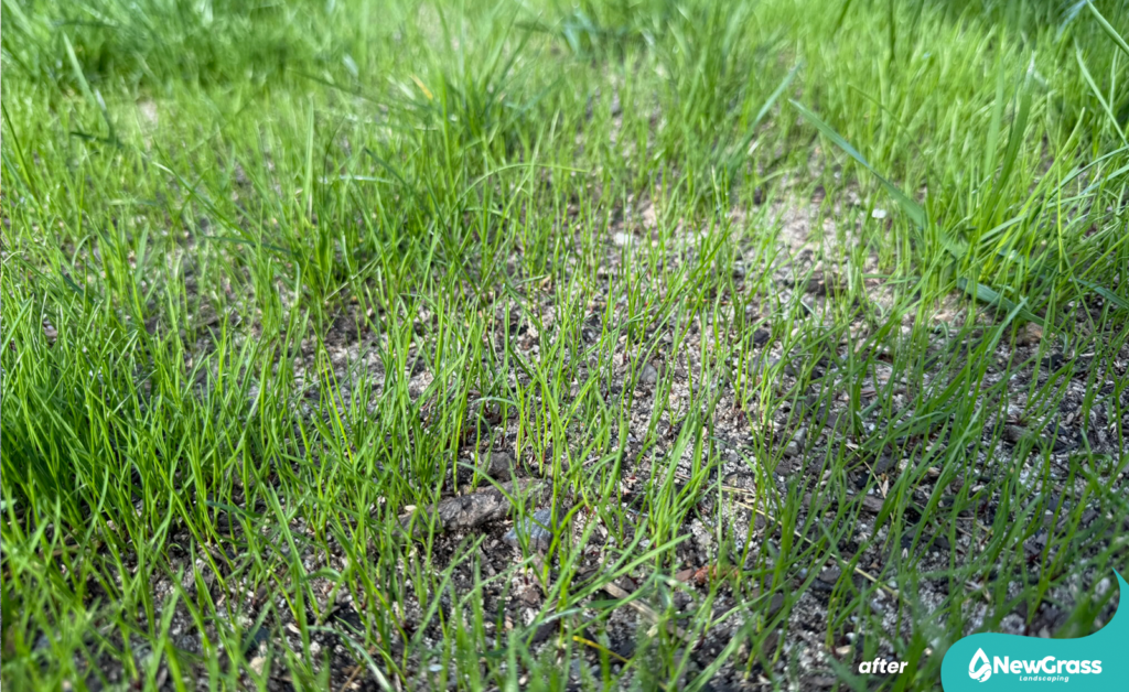 We used premium LESCO grass seed, combined with LESCO starter fertilizer and compost to correct and level the soil, as well as to improve seed-to-soil contact and support healthy germination.